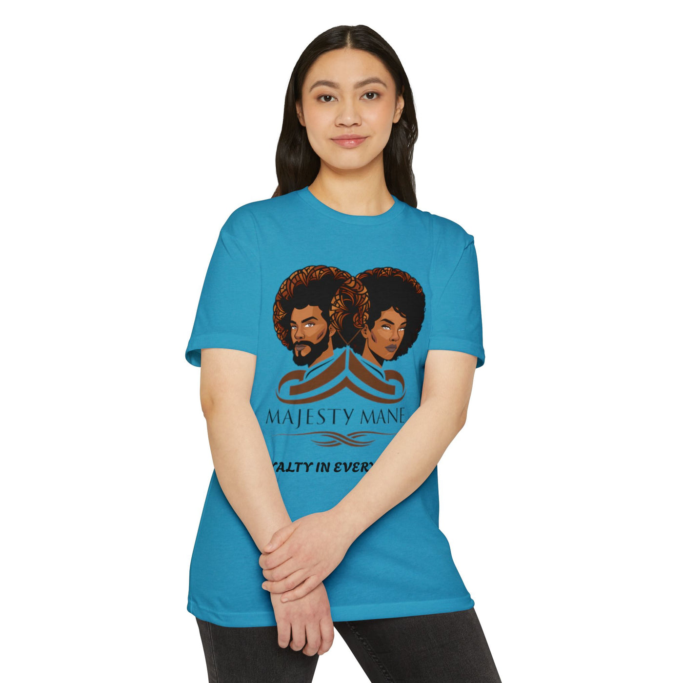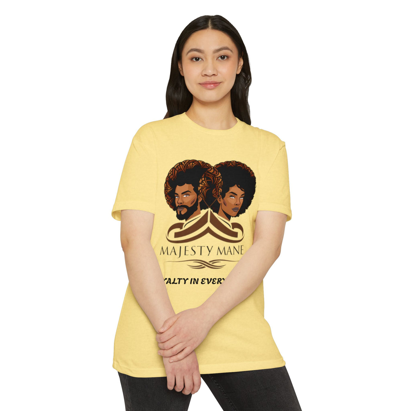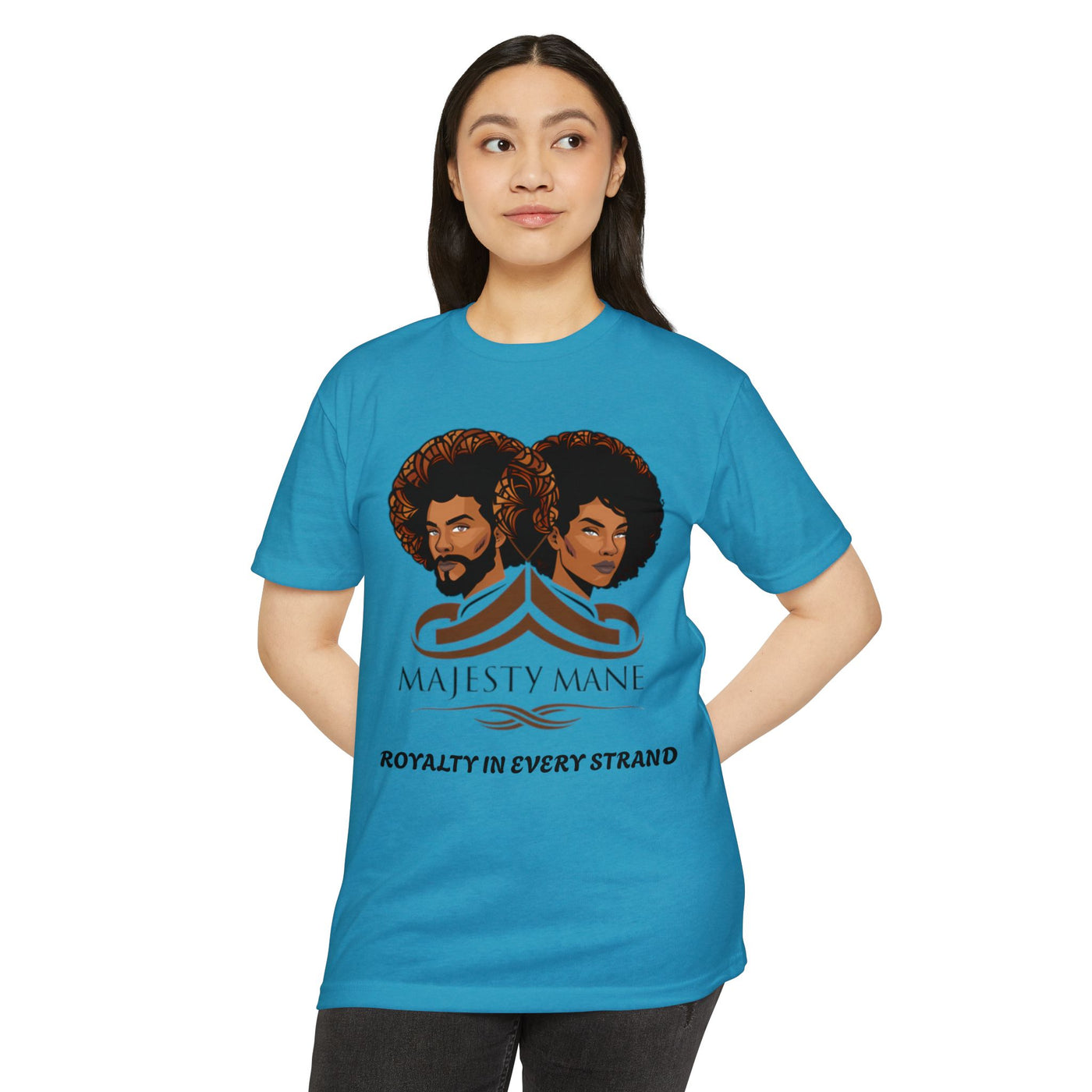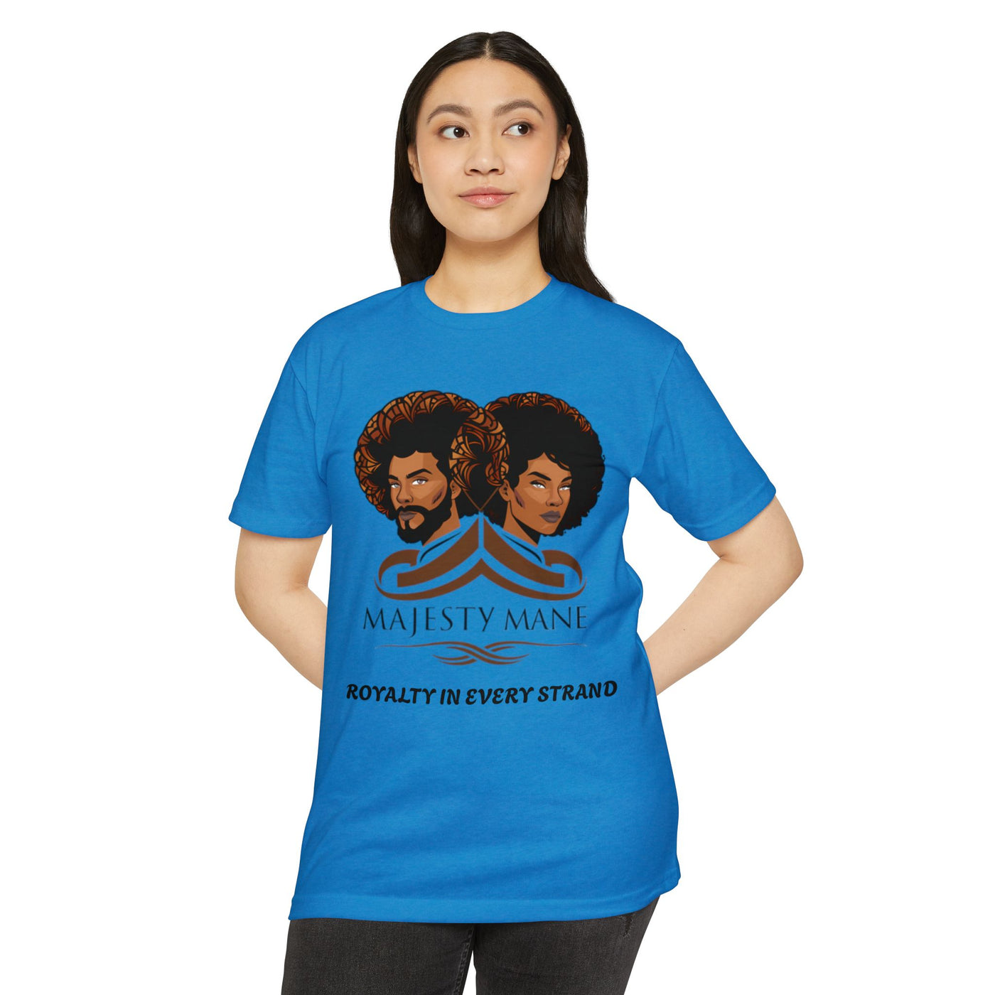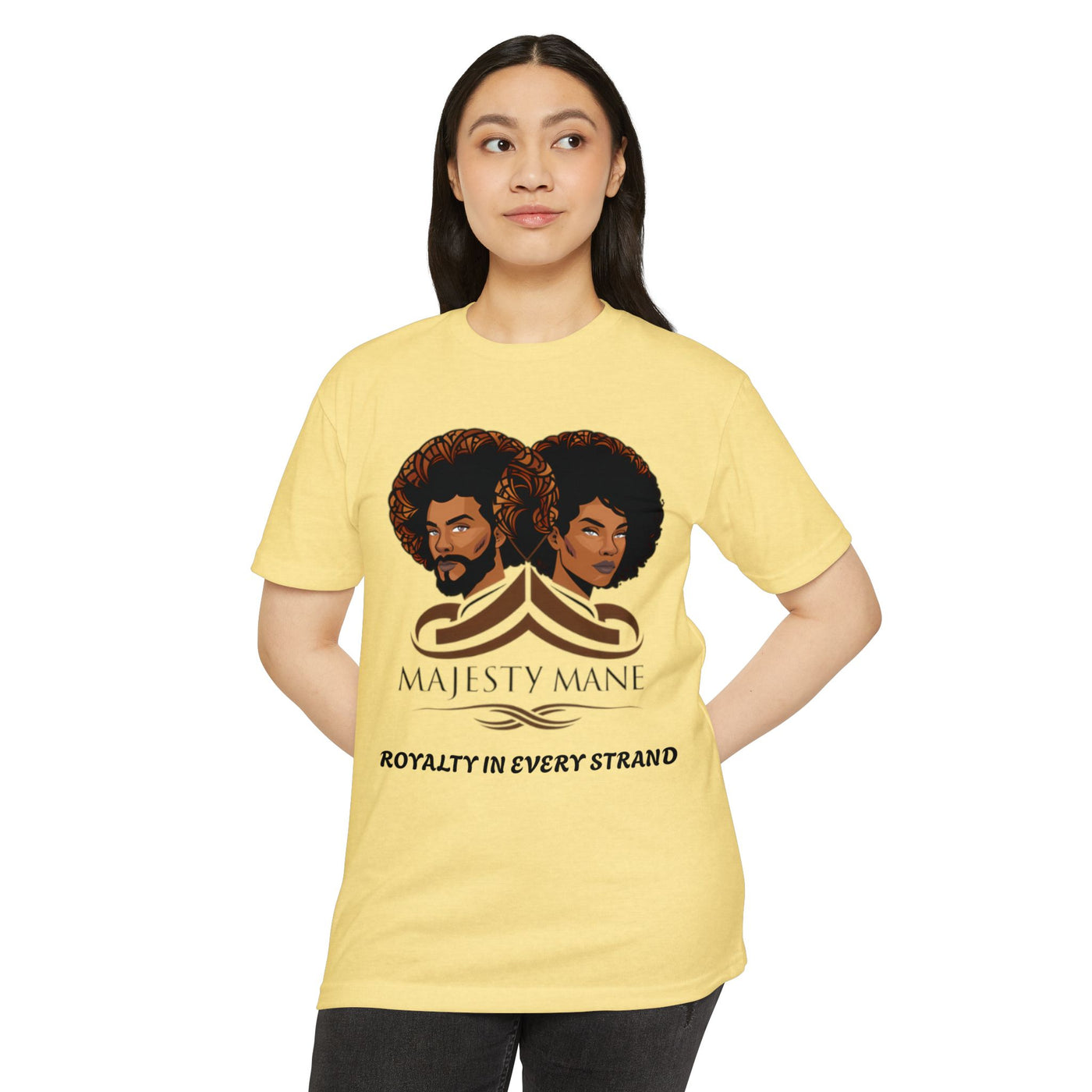 Elevate your wardrobe with our exclusive "Royalty in Every Strand" T-shirt, a true embodiment of luxury and style. This premium tee features our iconic logo, symbolizing the pinnacle of fashion and self-expression. Each shirt is a testament to the regality that lies within you, waiting to be showcased to the world.